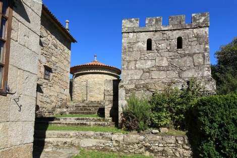 La propiedad está circundada por un antiguo muro de piedra. Dentro del muro hay 40.000 metros cuadrados de jardines y huerta, con dos imponentes hórreos, una torre del homenaje, palomar y capilla. Como dice el refrán, "palomar, capilla y ciprés pazo es".